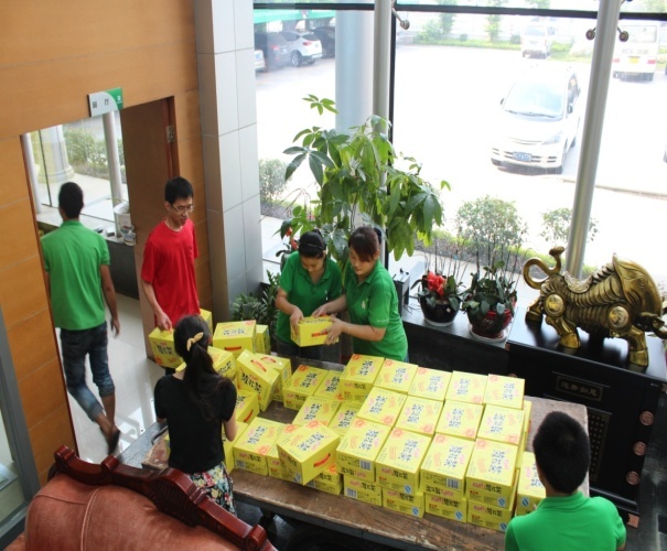 看着堆放如山的凉茶依次转交到各位同仁的手中,我们的工作人员也露出了会心的笑容。一箱凉茶不算多,但确是公司及公司工会对我们员工最深切的关怀。