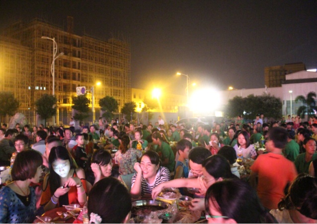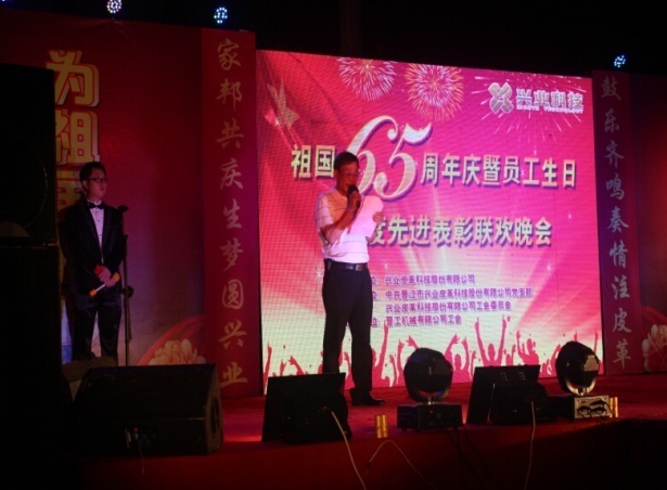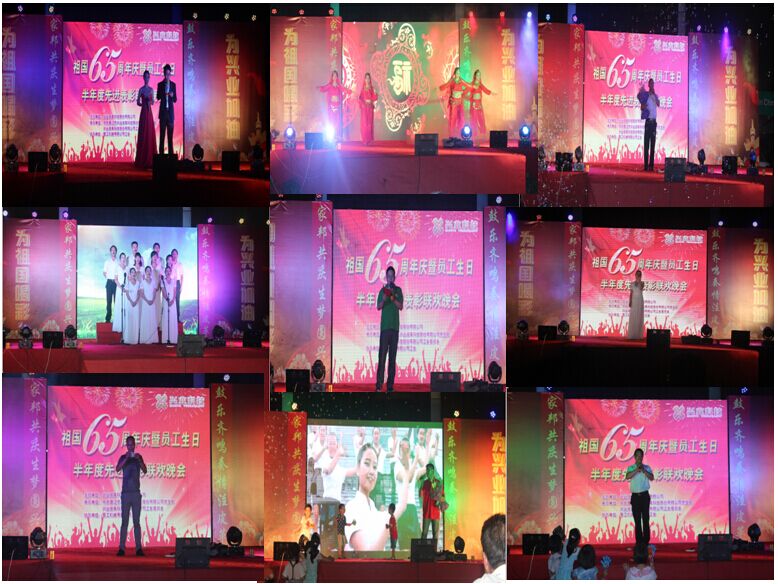 2014年9月27日7时,一场露天的联欢晚会在公司总部大楼前广场上如期举行,既为了迎国庆、颂祖国,也为了给9、10月过生日的同仁们庆祝生日,更为了表彰2014年上半年公司各部门涌现的又一批先进个人以及先进集体。当晚,同仁们欢聚一堂,欢声笑语响彻天际。明亮的灯火,照亮了夜空,也描画出祖国及公司繁荣昌盛的美景。晴朗的夜空,微风轻拂,金秋送爽,广场上发出的潮水般的欢呼声,表达对祖国和公司的祝福!