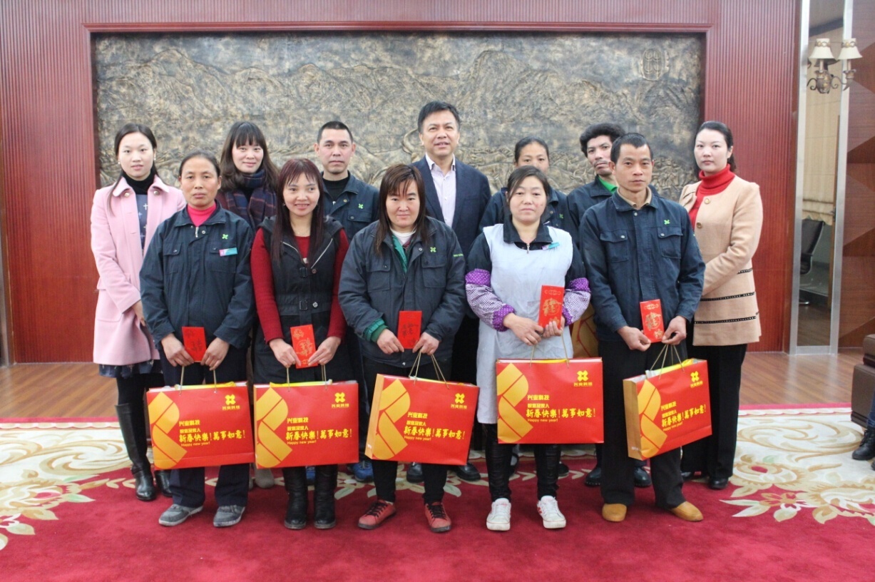 2015年2月3日,在公司贵宾接待室,吴华春董事长亲自为我们8名家庭困难,但致困情况各不相同的员工发放春节慰问金和年货大礼包,吴董的亲自关怀,让大家异常感动!