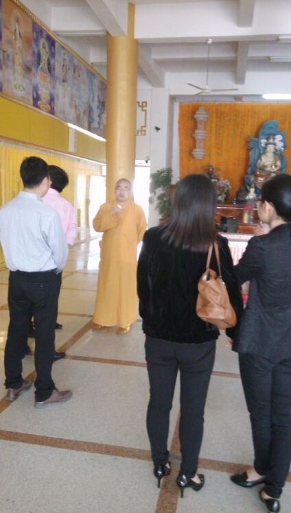 当大家乘坐的中巴车刚驶入福慧寺时,寺内的万修大师已在寺院内等候大家,在万修大师的带领下,大家参观了这座不同与其它普通寺院,深具佛学文化气息禅寺。