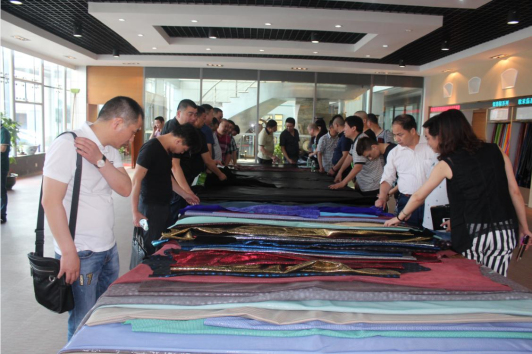 随后,在营销中心孔祥涛副总经理和总裁秘书林瑞华等人的带领下,考察团成员兴致勃勃地参观了公司的样品展示厅。公司吴华春董事长与来宾们亲切交谈,就当前新常态下行业发展趋势及所面临的相关问题进行了深入探讨。参观团对公司的规模、技术表示高度赞赏,尤其对我们丰富的系列产品给予一致的认可。