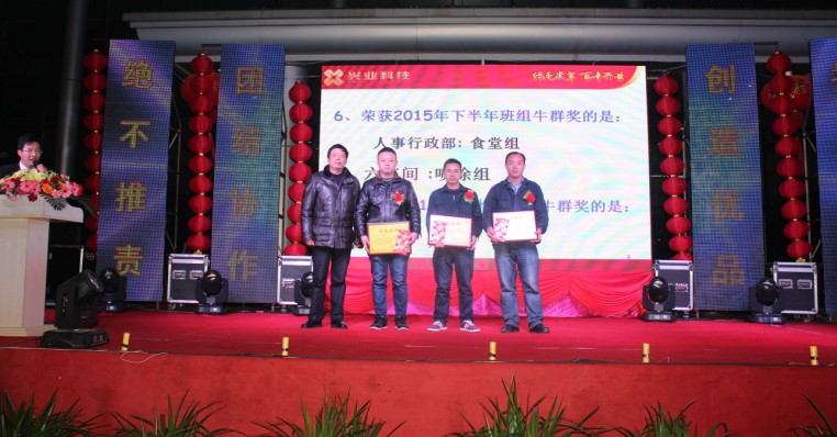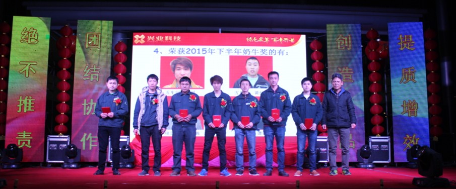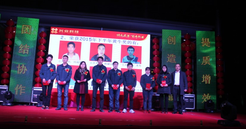 奖掖先进是每年员工大会上一道亮丽的风景,也是公司的优良传统,每年的这个时候,公司都要表彰上年度具备“执着、爱拼、勤劳、奉献”“牛”精神和特质的先进个人、先进集体,并给予物质及精神的奖励,激励大家以先进为榜样,积极向上,爱岗敬业,争当先进,弘扬兴业的“牛文化”,不断为公司的发展做出进一步贡献。