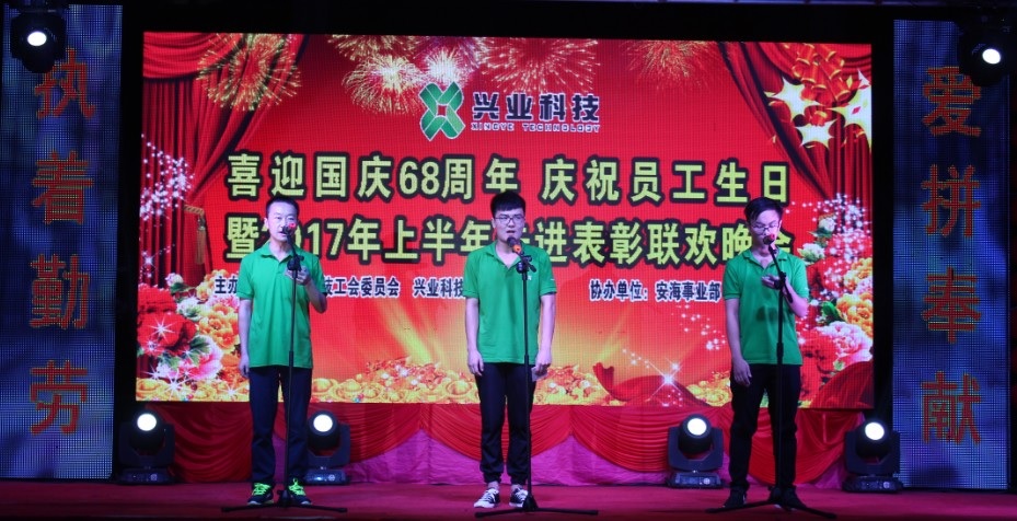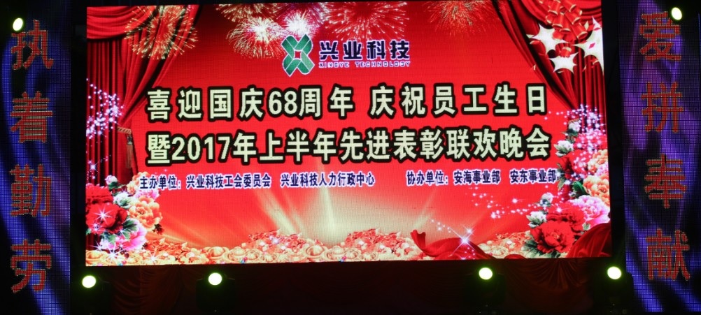 9月28日18:30分,由公司人行中心、安海事业部、工会委员会协同举办的 “迎国庆、庆生日、奖先进”联欢晚会,在公司总部广场隆重举行。