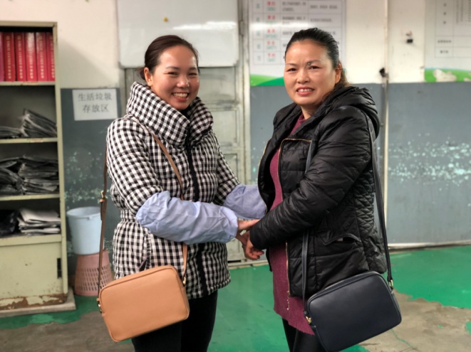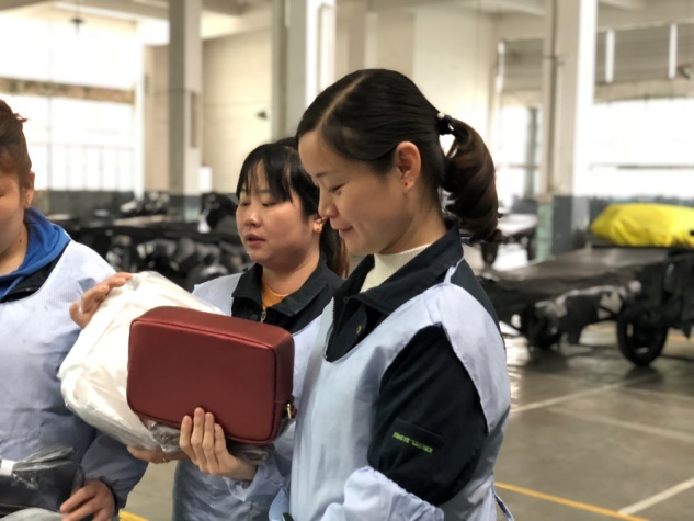 “看着自己亲手制作的皮料,被做成精美的女包送回自己的手上,有一种成就感与自豪感,这是我们兴业自己的产品,为兴业而骄傲!”